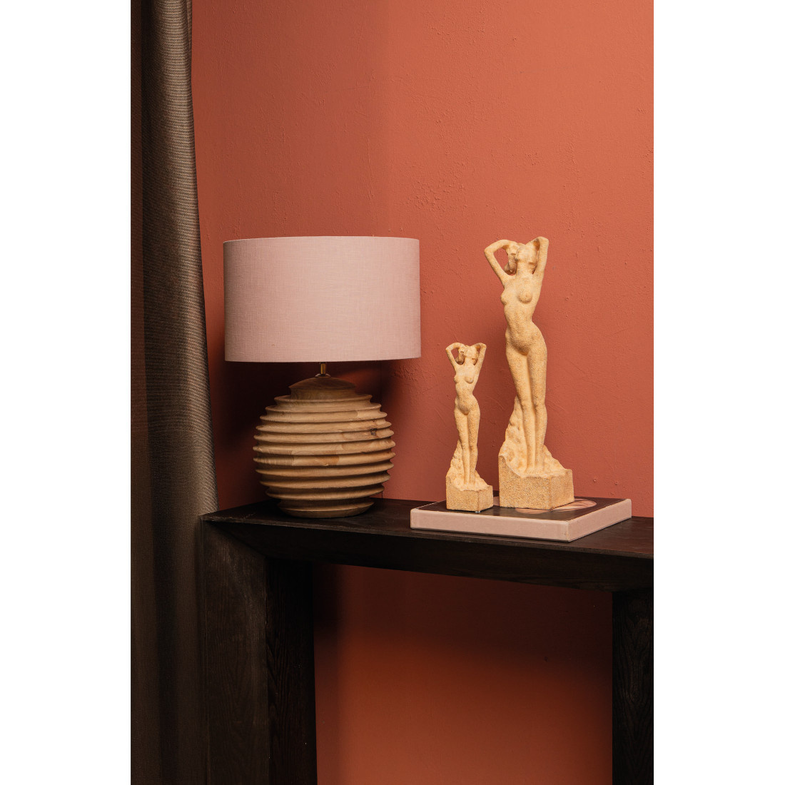 Modern vormgegeven sculptuur van een elegante vrouw. Uitgevoerd met een steenachtige look in een zandbruine kleur. Met een sierlijke uitstraling is het een uniek object voor in je interieur!