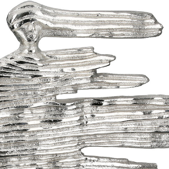 Vormgegeven uit aluminium met een moderne textuur. Het gehele beeld inclusief de voet is zilver gekleurd.
