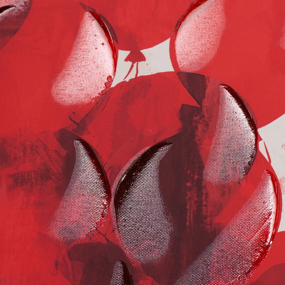 Modern schilderij met vrolijke afbeelding van meisje aan ballonnen. Voorzien van een zilvergrijze houten lijst. Gemaakt door middel van verschillende technieken van print en acrylverf op linnendoek. Het linnen is gespannen op een naaldhouten frame. Een kunstwerk met een geheel eigen vrolijke sfeer.