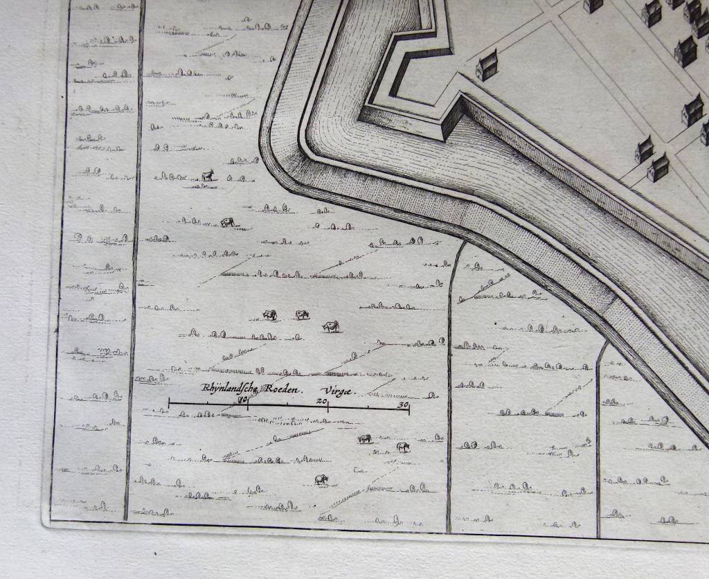 Kopergravure uit het eerste deel van een Nederlandse uitgave van 'Toonneel der Steden..', de beroemde stedenatlas van Joan Blaeu uit 1649. Uitgegeven te Amsterdam als 'Novum ac magnum theatrum urbium Belgicae regiae et foederatae'.