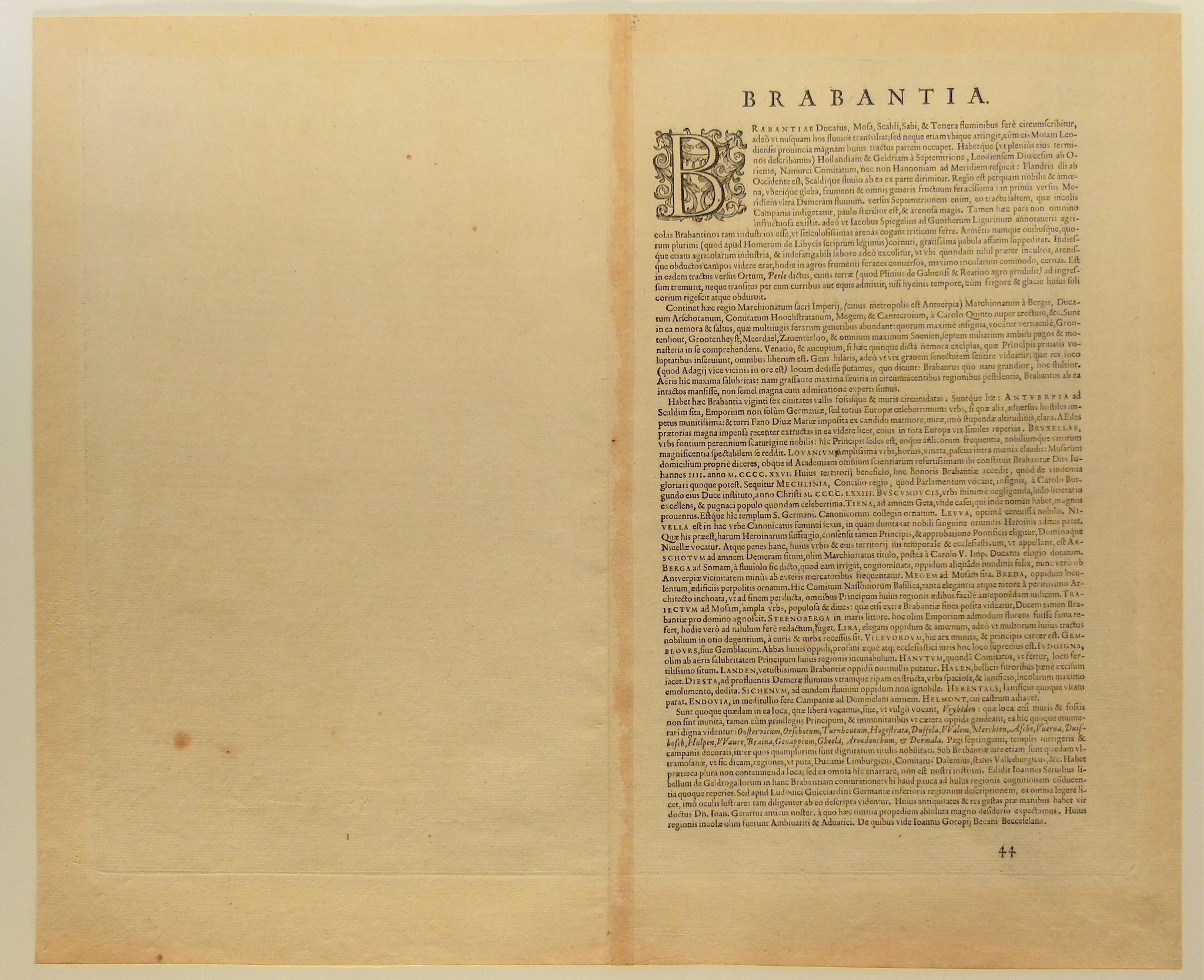 Abraham Ortelius (1527-1598) was een Brabantse geograaf en uitgever. Ortelius is samen met Mercator de uitvinder van de wereldatlas. Zijn 'Theatrum Orbis Terrarum' bracht hem grote roem. De graveurs Joris Hoefnagel en Frans Hogenberg waren werkzaam voor hem. In 1573 werd hij benoemd tot geograaf van Philips II. Na Ortelius dood werden de koperplaten gekocht door Jean Baptiste Vrients en de firma Platijn-Moretus.