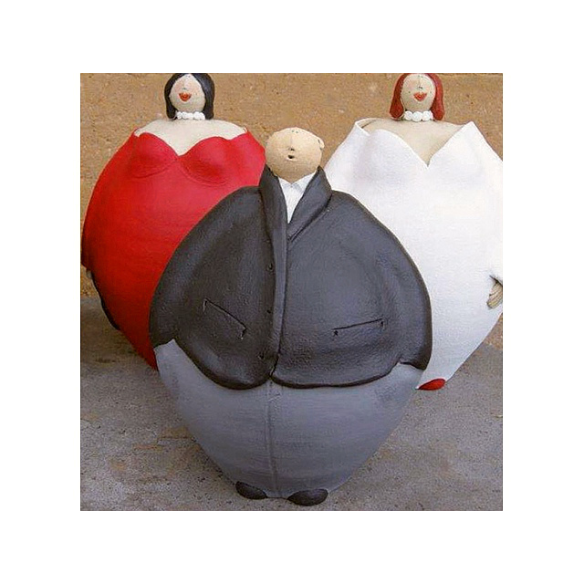 Serie kleurrijke beelden van de succesvolle Duitse keramiste Susanne Boerner. Het voornaamste kenmerk, van haar met de hand gemodelleerde beelden, is de geestige en soms ook excentrieke uitstraling.