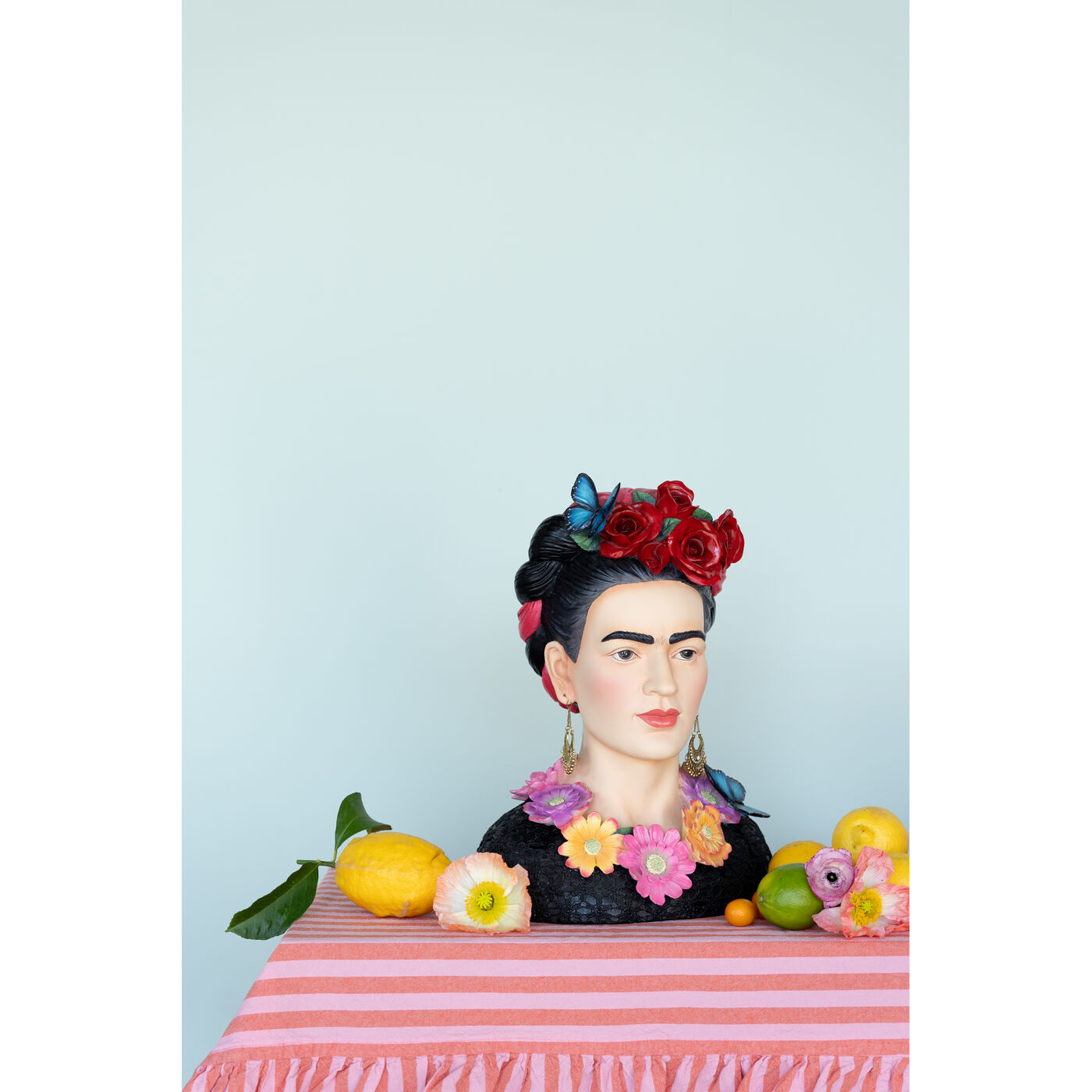 Viva Mexico: tot op de dag van vandaag wordt Frida beschouwd als een van de beroemdste schilders van Mexico. Wij hebben nu haar buste als decoratief object. Net als haar werken betovert dit sculptuur haar omgeving met een sensationeel kleurenspektakel dat kleur viert in de boho-stijl voor alle fans van deze buitengewone vrouw. Een decoratief object met expressiviteit voor een kunstenaar die tot op de dag van vandaag invloed blijft uitoefenen op kunst, mode en interieurdesign. Dit beeld van de legendarische influencer is detaillistisch bewerkt met veel liefdevolle details zoals bloemen, vlinders en echte oorbellen! De decoratieve buste is zo aantrekkelijk dat het een centrale plaats verdient; op de vensterbank, boekenplank, het dressoir of op tafel. Een heel bijzonder cadeau voor alle creatieve en sensuele mensen.