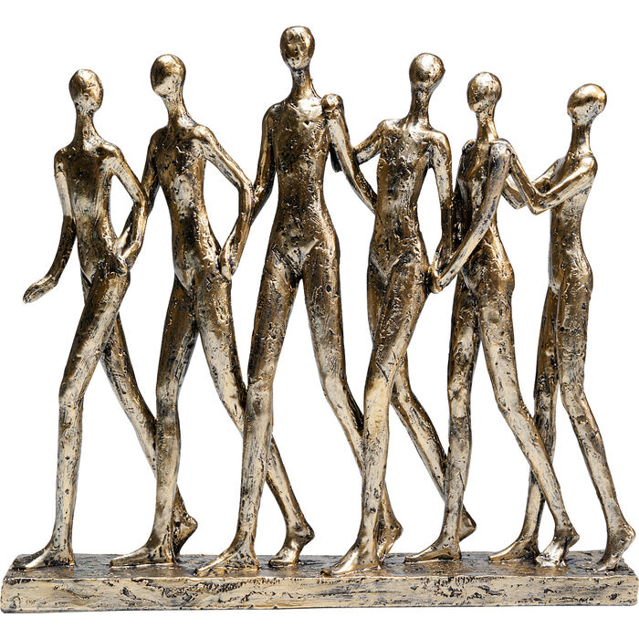 Beeld met een groep van 6 figuren die met elkaar op stap zijn. Het kan een familie of een vriendengroep zijn. Feit is wel dat ze het met z'n allen zichtbaar naar de zin hebben.