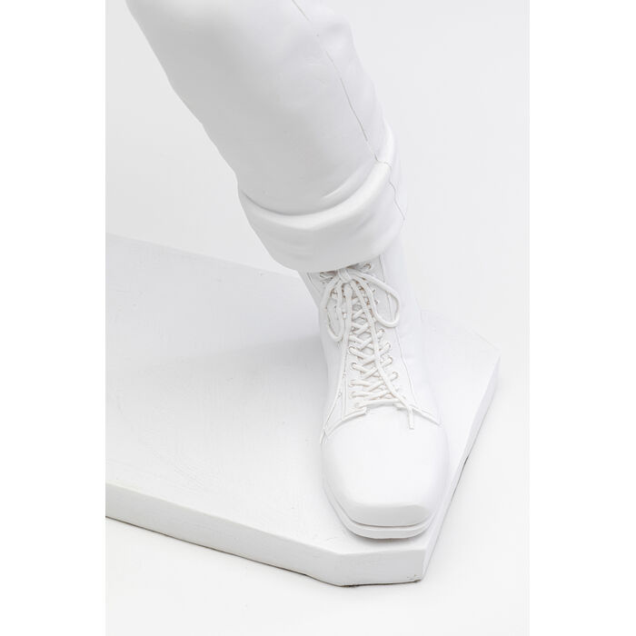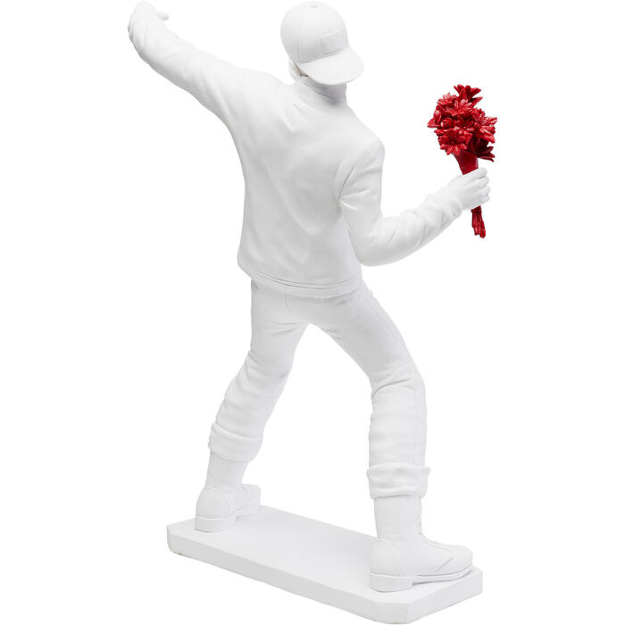 Voor velen een bekend kunstwerk, de jongen die een boeket bloemen werpt. Een muurschildering van de bekende Britse graffitikunstenaar Banksy. Terwijl de protesterende relschopper in het wit is afgewerkt, hebben de bloemen kleur gekregen om er extra nadruk op te leggen. Een beeld dat in eerste instantie oogt als oproer maar staat voor vrede. De boodschap is ‘maak vrede, geen oorlog’, in een tijd waarin talloze conflicten de wereld verdelen. Door zijn hoogte van 66,5 cm is het een geweldig formaat voor in je huis.