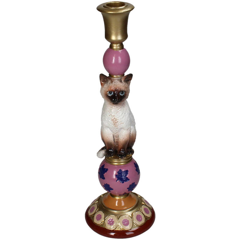 Voeg een speelse en unieke flair toe aan je interieur met deze katten kandelaar voor één dinerkaars. De opvallende kandelaar, in de vorm van een lichtbruine kat en geplaatst op decoratieve ronde vormen, is een toevoeging voor het interieur van iedere kattenfanaat. Het is de ideale manier om een onverwachte charme toe te voegen aan je eettafel of woonkamer.
