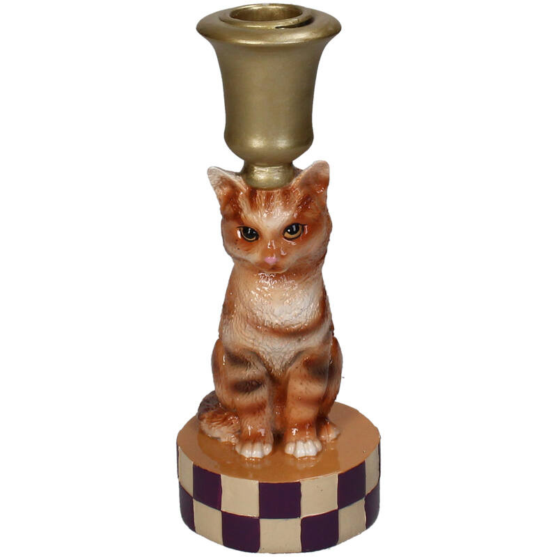 Voeg een speelse en unieke flair toe aan je interieur met de katten kandelaar voor één dinerkaars. Deze opvallende kandelaar, in de vorm van een rode kat en geplaatst op een geblokt plateau, is een toevoeging voor het interieur van iedere kattenfanaat. Het is de ideale manier om een onverwachte charme toe te voegen aan je eettafel of woonkamer.