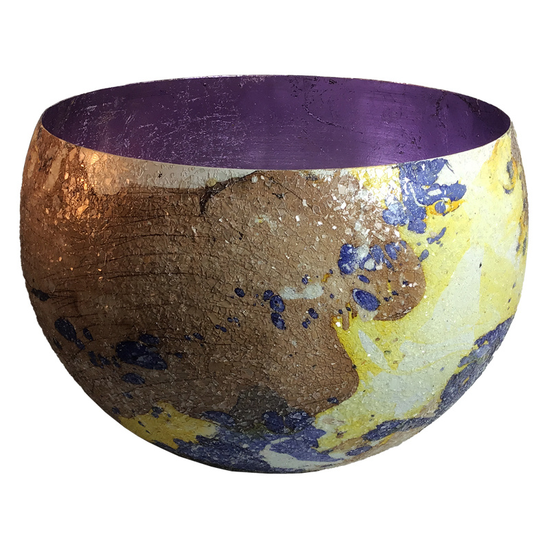 Deze prachtig grote schaal is zeer decoratief en een echte eye-catcher in je interieur. De basis van de vaas is metaal, verder is de schaal geplatineerd en afgewerkt met kleine stukjes glas over de gehele buitenkant. Zeer decoratief voor op een eettafel, dressoir of pilaar!
