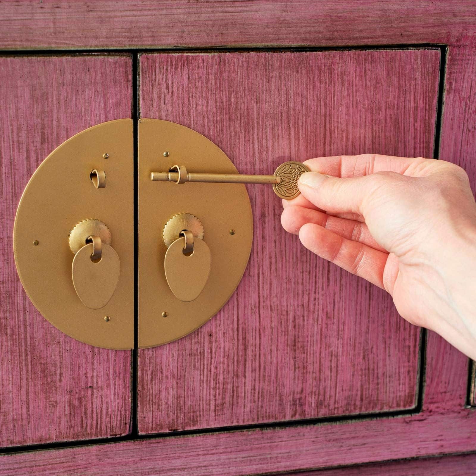 Prachtig houten vintage kastje uitgevoerd in een roze kleur met goudkleurig beslag. Het kastje biedt opbergruimte en 6 kleine laden en staat uitstekend in een hal of woonkamer, decoratief en in het oog springend!