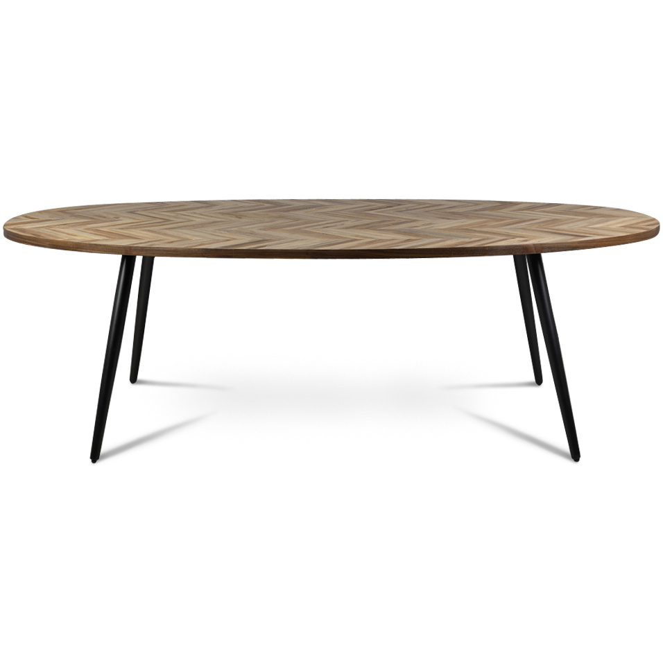 Moderne elegantie. Ronde vormen, elegant afgewerkte platte rand en visgraat ingelegd in het tafelblad. Deze Asca eettafel heeft een moderne en eigentijdse stijl. Verfijnde, liefdevolle details, natuurlijke materialen en een uitgekiende afwerking kenmerken deze houten tafel.