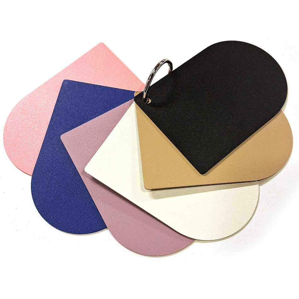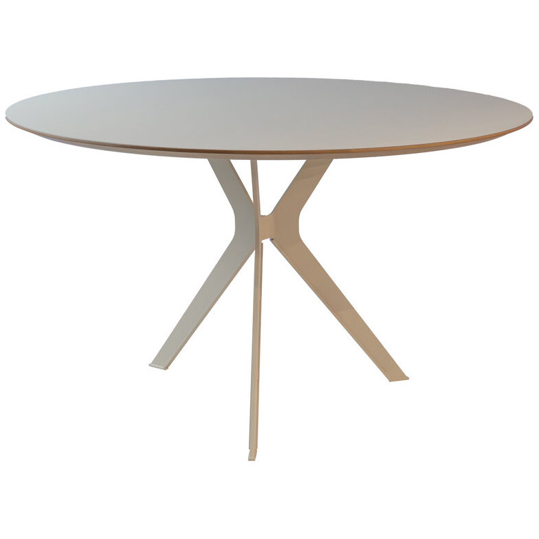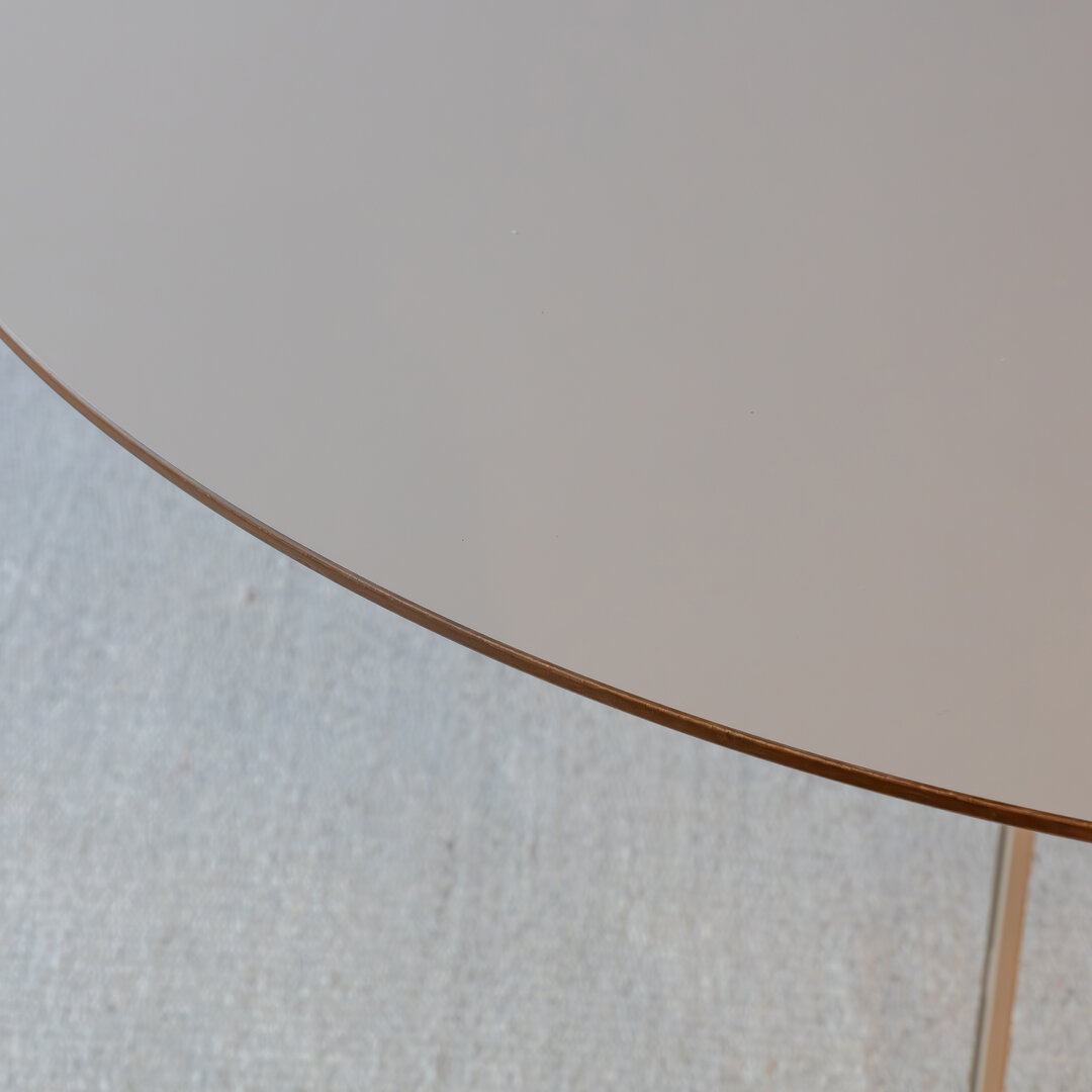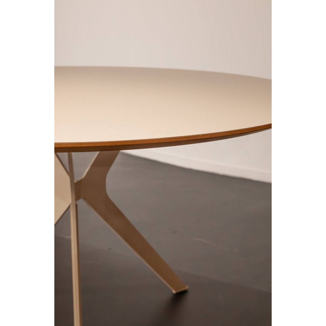 De poot heeft de kleur opties: cloud, taupe, zwart en violet. Het blad heeft de kleur opties: taupe, roze en satin. De eetkamertafel zoals getoond in onze winkel hebben wij zelf samengesteld, zie laatste foto's. Het showmodel heeft een taupe blad met een violet poot. Bekijk de stalen bij ons in de winkel!