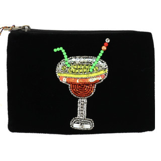 Dit handgemaakte elegante en opvallende tasje is niet alleen functioneel maar heeft tevens een artistieke uitstraling. Het tasje is afgewerkt met een zwarte achtergrond waar een cocktail op staat. De cocktail komt mooi naar voren door de kraaltjes die hierop zijn genaaid. Verfijnd en praktisch, te gebruiken voor diverse doeleinden!