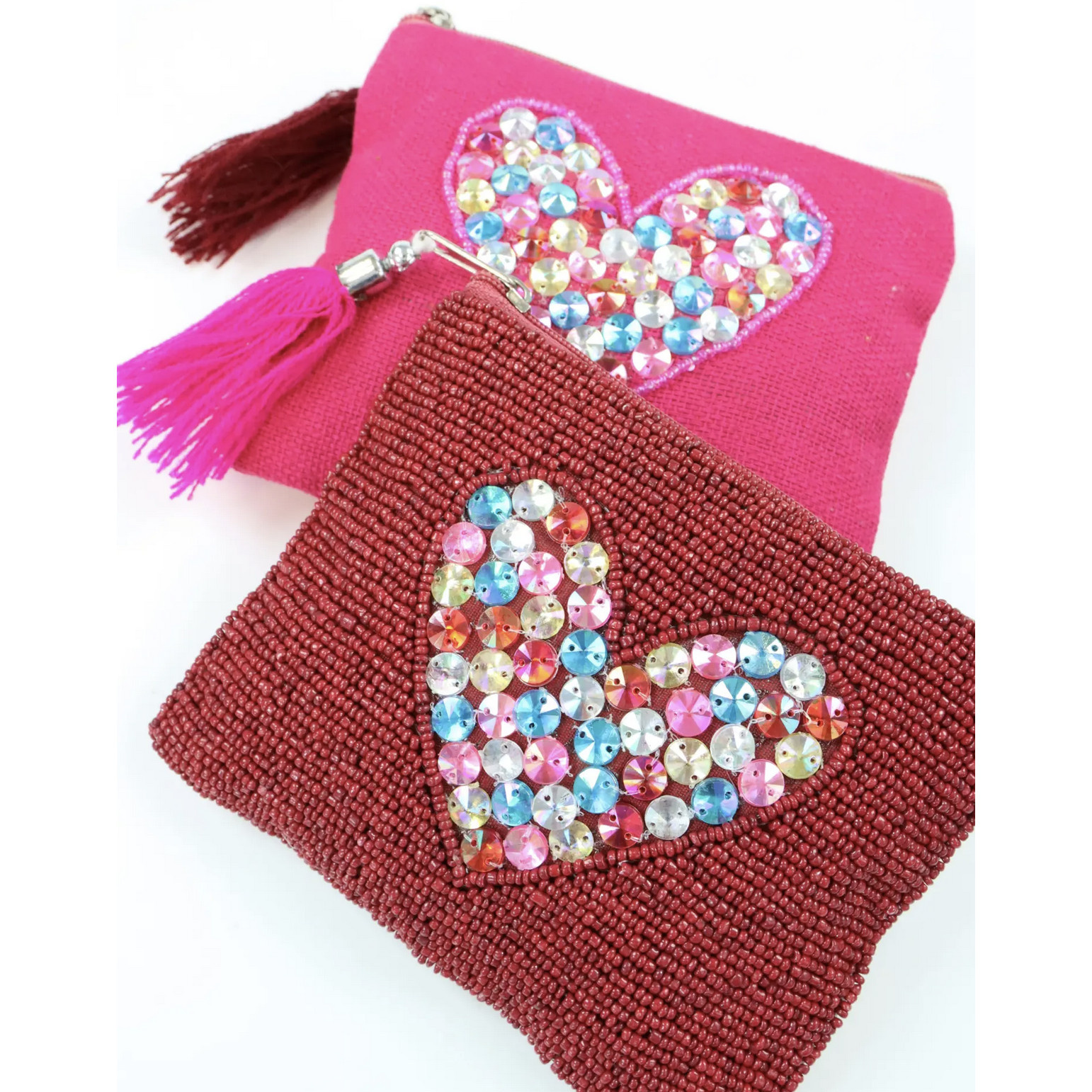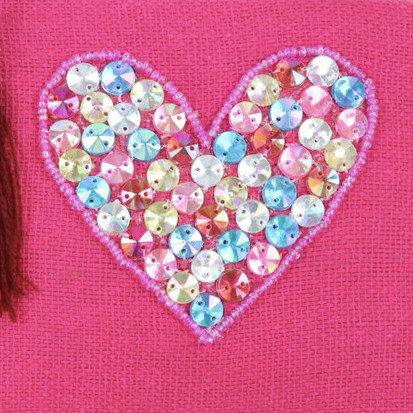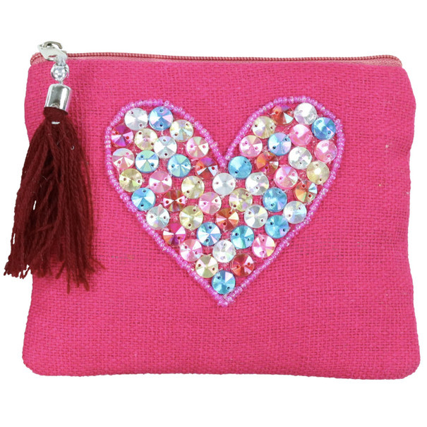 Dit handgemaakte elegante en opvallende tasje is niet alleen functioneel maar heeft tevens een artistieke uitstraling. Het tasje is afgewerkt in een bordeauxrode kleur met een hartje erop. Het hartje komt mooi naar voren door de kraaltjes die hierop zijn genaaid. Verfijnd en praktisch, te gebruiken voor diverse doeleinden!