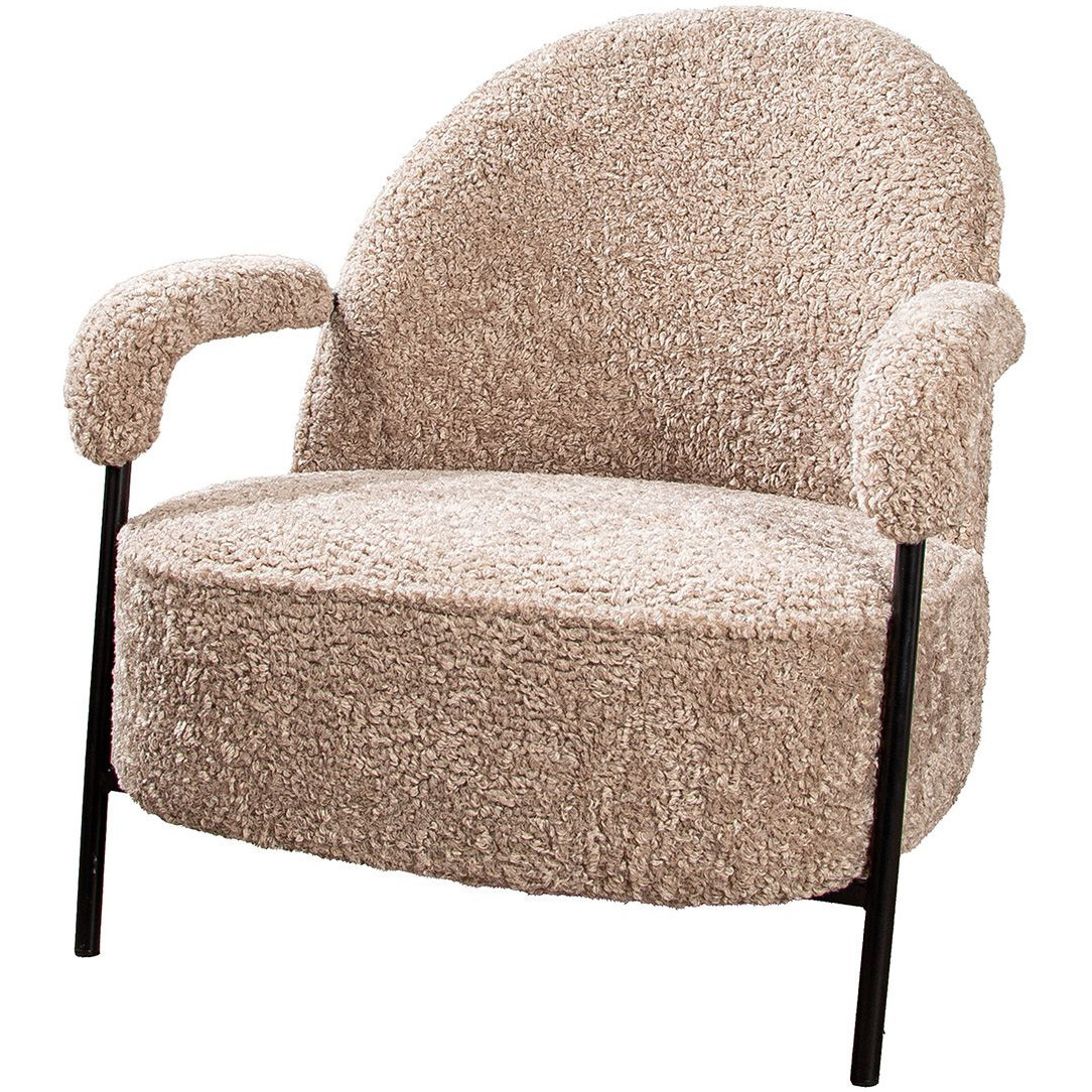 Deze heerlijke zitvorm is gemonteerd op een metalen onderstel in mat zwart. De stoel is, inclusief armleuningen, geheel gestoffeerd in een beigekleurige teddy stof. Zacht, wollig en warm voor de echte knusse sfeer in huis! De makkelijk te combineren kleur samen met de gemoedelijke uitstraling zorgt dat deze 'Ovina' fauteuil past in verschillende interieur stijlen!