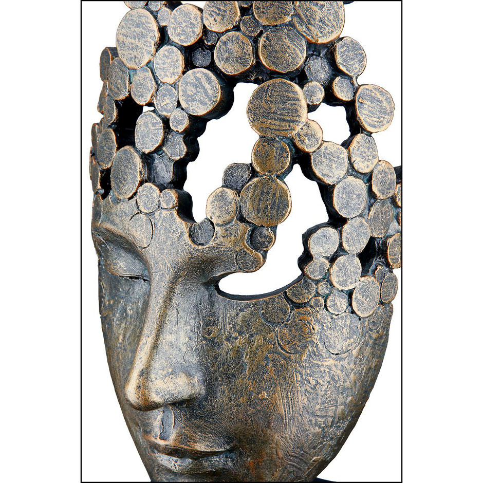 Geheel gemaakt van polyresin. Uitgevoerd in gespoten antiek brons op een mat zwarte voet.