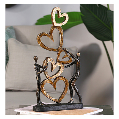Modern beeld waarbij twee figuren symbolisch harten aan het stapelen zijn. Ze hebben daarbij al een behoorlijke stapel met grote en kleine hartjes opgebouwd. Dit beeld komt uit de serie "Karaktereigenschappen" van de Duitse firma Gilde. Harten staan natuurlijk symbool voor liefde en geluk. Zoals ook toepasselijk is omschreven op het bijgevoegde Duitse tekstkaartje: "Ons hart wijst ons de weg naar geluk."