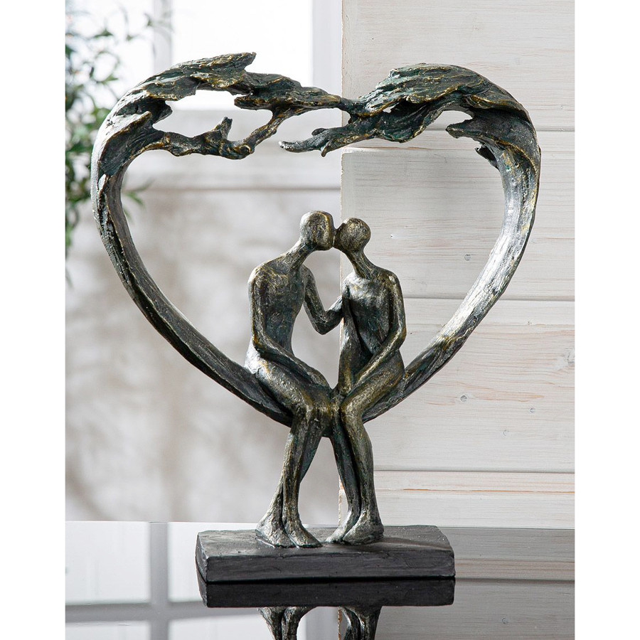 Modern, symbolisch sculptuur met een boom in de vorm van een hart. Twee menselijke figuren geven elkaar een kus zittend op de stam van deze boom. Een prachtig vormgegeven kunstwerk vol met symboliek.
