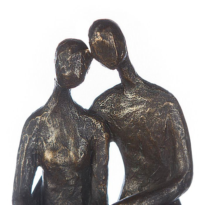 Geheel gemaakt van polyresin. Het organische figuur is uitgevoerd in antraciet, het liefdespaar in antiek brons.