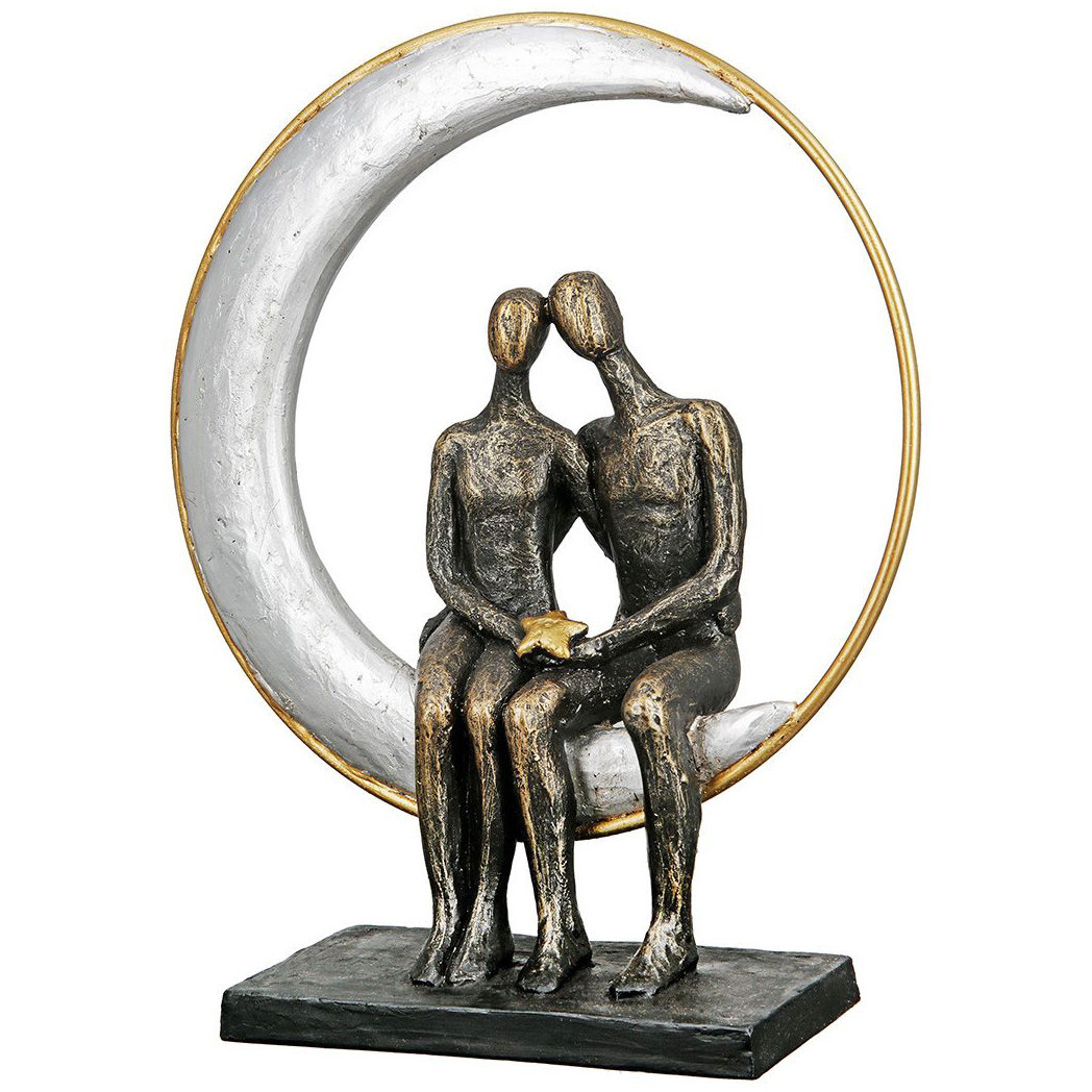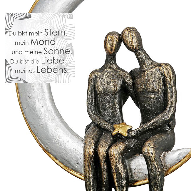 Modern sculptuur met een man en een vrouw zittend op een zilverkleurige halve maan waarbij ze samen symbolisch een ster vasthouden. Uit de serie "Karaktereigenschappen" van de Duitse firma Gilde. Dit beeld staat natuurlijk symbool voor de band tussen twee mensen en de liefde voor elkaar die onbeschrijflijk groot is. Het Duitse tekstkaartje luidt dan ook dichterlijk: 'Jij bent mijn ster, mijn maan en mijn zon. Jij bent de liefde van mijn leven'.