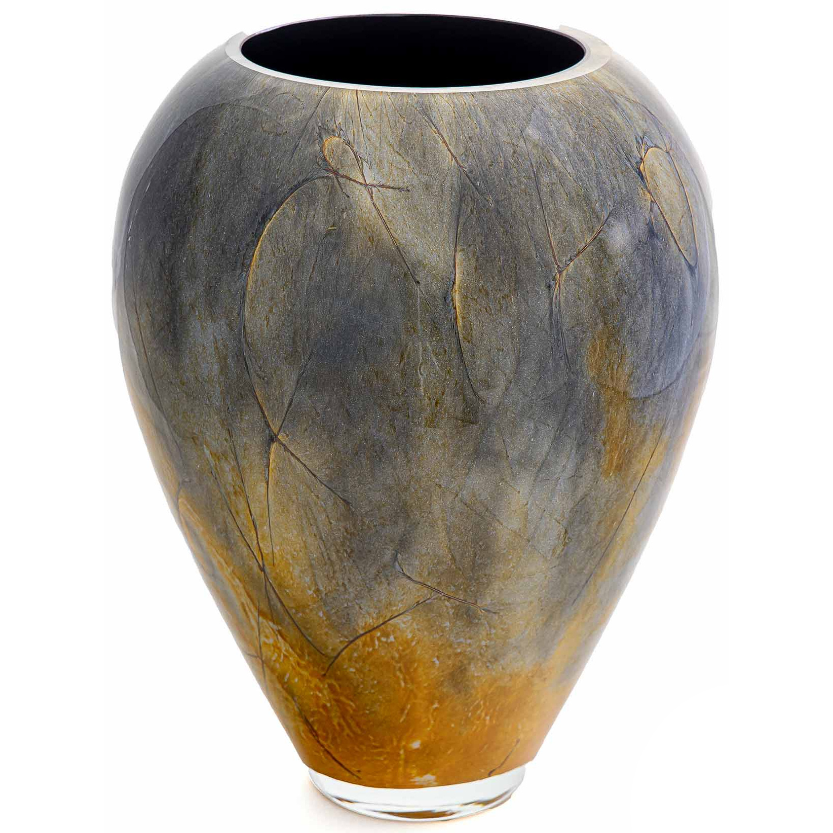 Decoratieve glazen vaas uit de Fidrio exclusive collection. Deze elegant gevormde vaas is met de hand gemaakt en uitgevoerd in diverse warme tinten aardgeel/bruin/oranje/zwart. Het eindresultaat is een bijzondere vaas die een kunstwerk op zich is maar ook prima kan dienen als bloemenvaas.