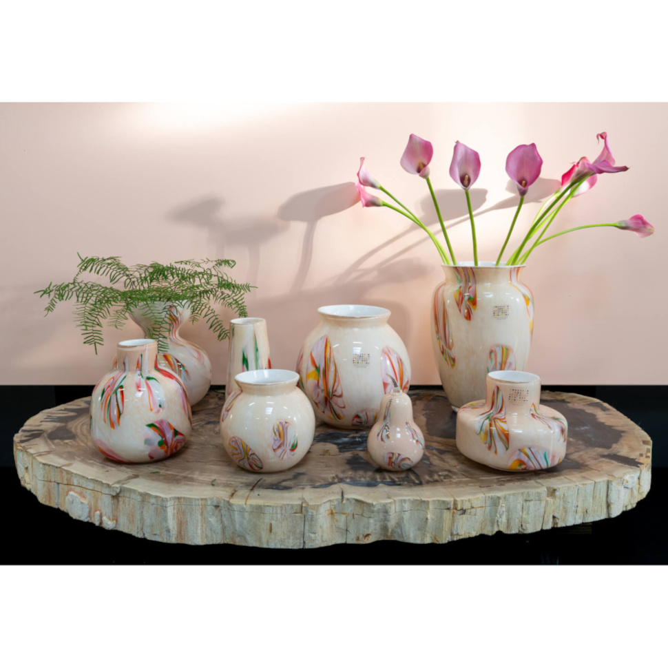 Decoratieve glazen vaas uit de Fidrio exclusive collection. Met een luxe uitstraling uitgevoerd in diverse frisse tinten oranje/rood/roze/groen.
