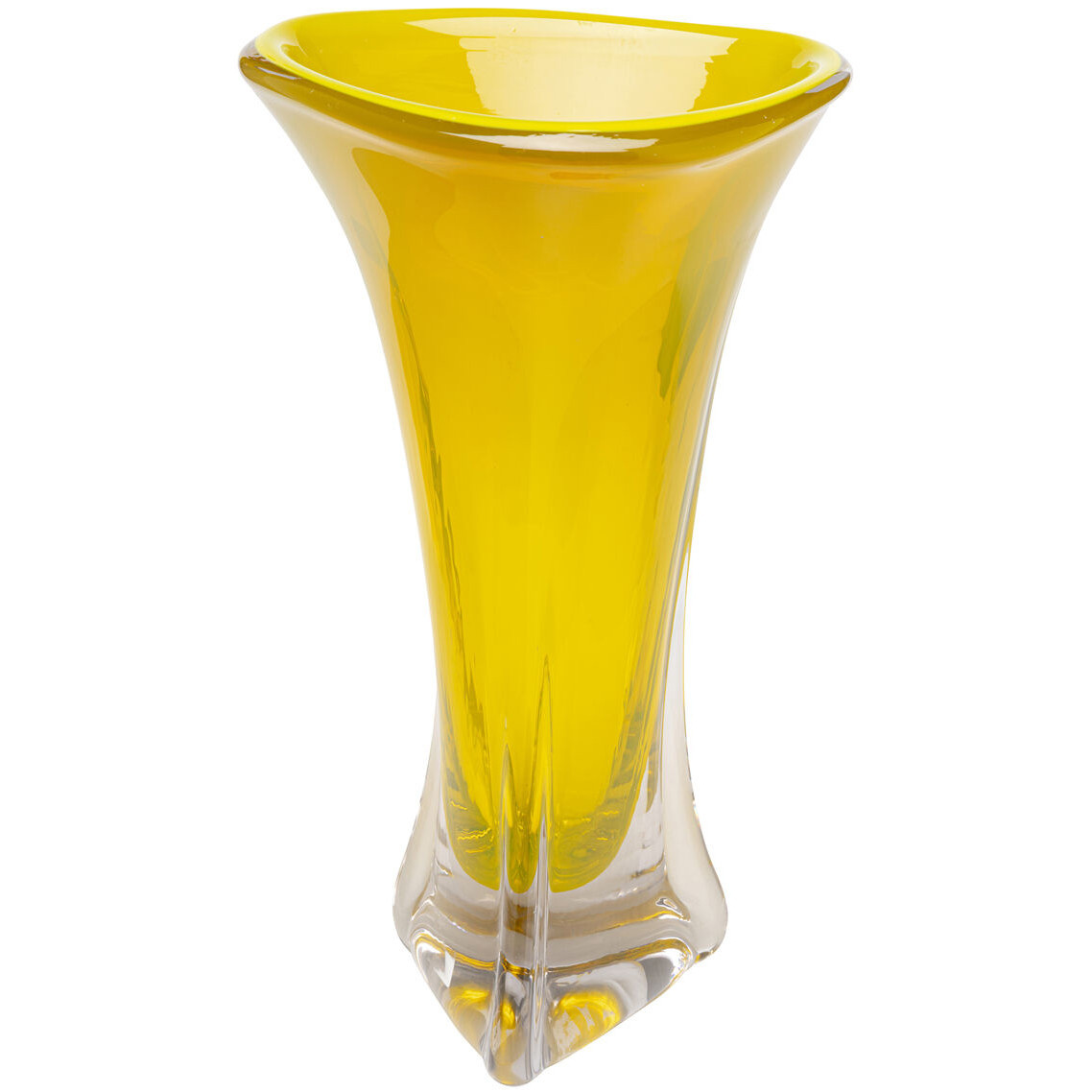 Bijzonder decoratieve vaas, een prachtige eye-catcher voor op een tafel of kast. Vooral erg opvallend door zijn bewegende vorm, deze vaas is niet strak rond en dat maakt het een bijzonder mooi item voor op de eettafel! Uitgevoerd in het geel.