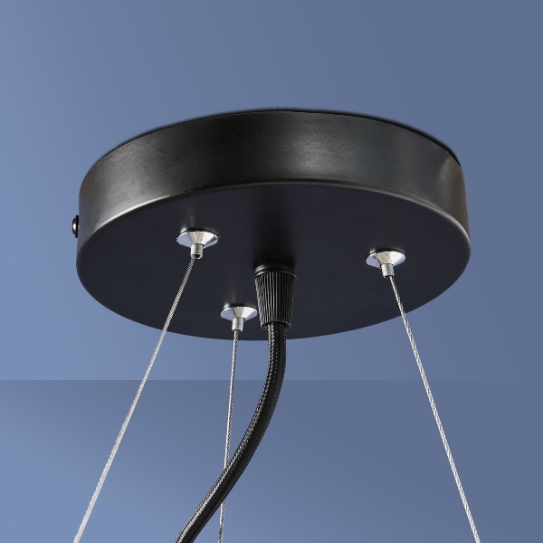 Dave hangt aan 3 in hoogte verstelbare staalkabels van maximaal 120 cm en is voorzien van een zwart linnen strijkijzersnoer met een lengte van 135 cm.