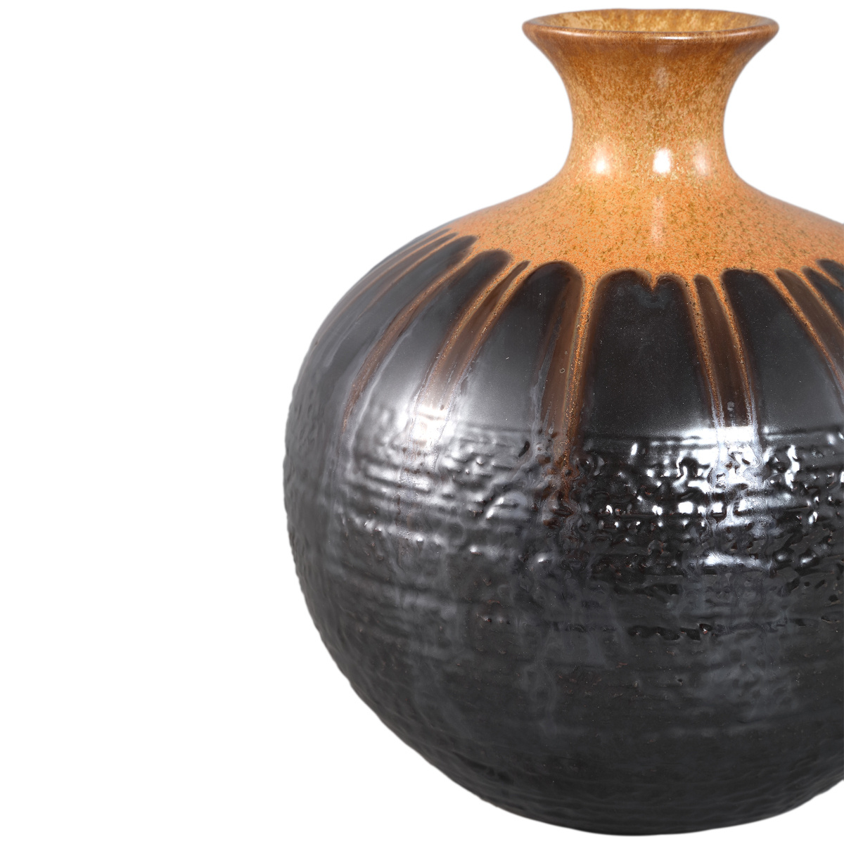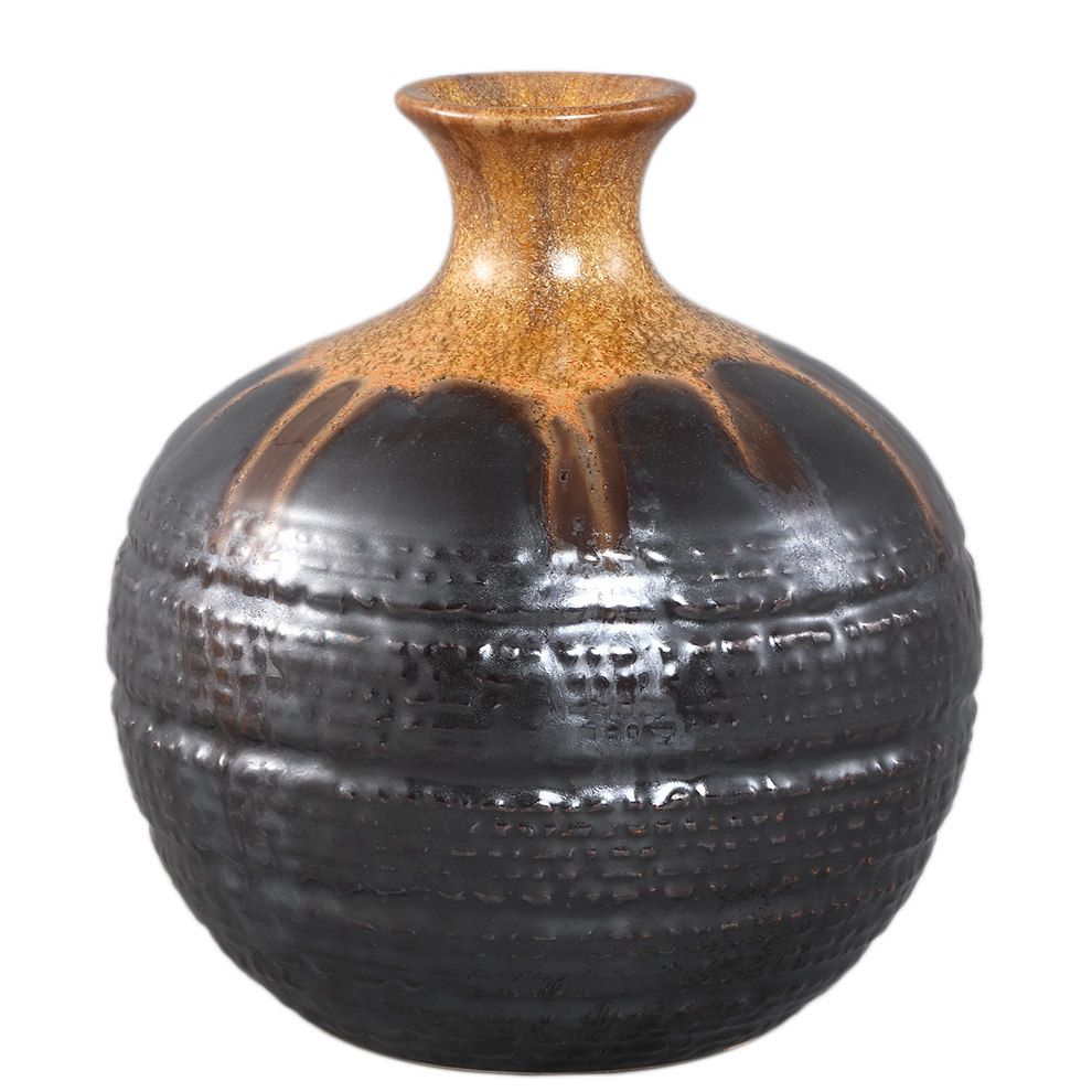 Decoratieve bolvaas van keramiek met een luxe uitstraling uitgevoerd in een bruine/grijze kleur. Door zijn net niet perfecte bolvorm een mooie decoratieve vaas voor op een eettafel, dressoir of kookeiland.