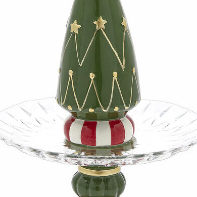 Een handige en decoratieve etagere voor de feestdagen waar je makkelijk je kerstkransjes of ander snoepgoed op kwijt kunt. In de kleuren rood, groen, wit en goud met doorzichtig glas. Een uniek exemplaar voor op de eettafel bij het kerstdiner!