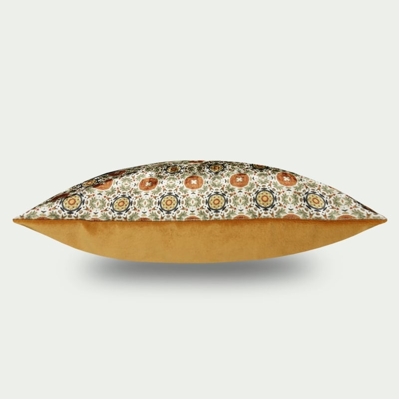 Dit prachtige velours kussen is voorzien van een opvallend patroon met bloemen. De achterzijde van dit kussen is okergeel. Uitgewerkt in diverse warme kleuren met een luxe uitstraling. Het geheel van deze uitvoering trekt de volle aandacht. Je bank of stoel ondergaat een ware metamorfose wanneer je dit kussen erin legt. Een eyecatcher die je huis niet alleen meer kleur, maar ook meer vrolijkheid geeft!