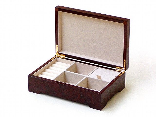 De binnenzijde van de doos is gestoffeerd met een crèmekleurige zachte velours. Daarnaast is hij voorzien van vakverdeling voor verschillende sieraden, waaronder een gedeelte voor ringen. Het 18 tonige Böhme speelwerk is van goudkleurig metaal en wordt afgedekt door een klein plaatje. Dit kan eenvoudig weer worden verwijderd om de werking ervan te bekijken. Aan de onderzijde, die is bekleed met een bordeauxrode velours, zit een vleugelmoer om het mechanisme mee op te winden. Als vervolgens het deksel van de doos wordt geopend begint de melodie te spelen, na sluiting stopt deze ook weer.