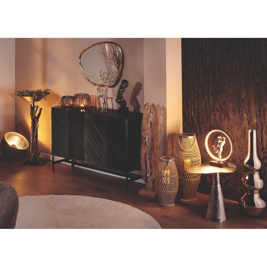 Gemaakt van polyresin en siliconen (LED). Uitgevoerd in antraciet met antiek bronzen figuren. De onderzijde is voorzien van zwart vilt. Lengte van de zwarte elektriciteitssnoer is 1,85m.