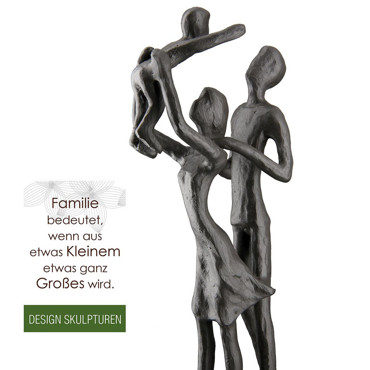 Dit beeld toont een jong stel dat onlangs pappa en mamma is geworden. De moeder tilt liefdevol haar baby omhoog, waarna ze samen met haar man, vol verwondering het kind aanschouwen. Het geluk van dit jonge gezin straalt er vanaf. Of zoals de tekst op het bijgevoegde spreukkaartje luidt: 'Familie betekent, wanneer van iets kleins iets groots wordt'.