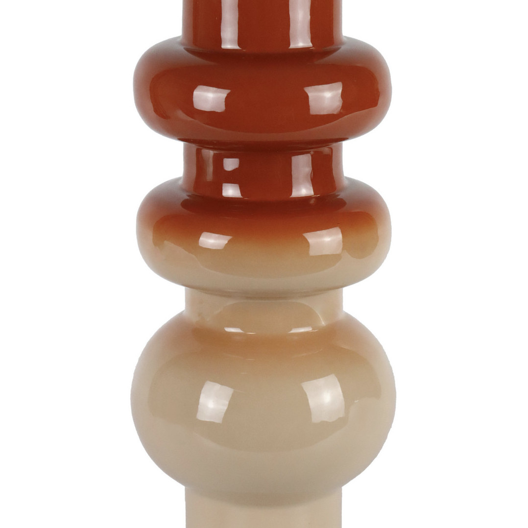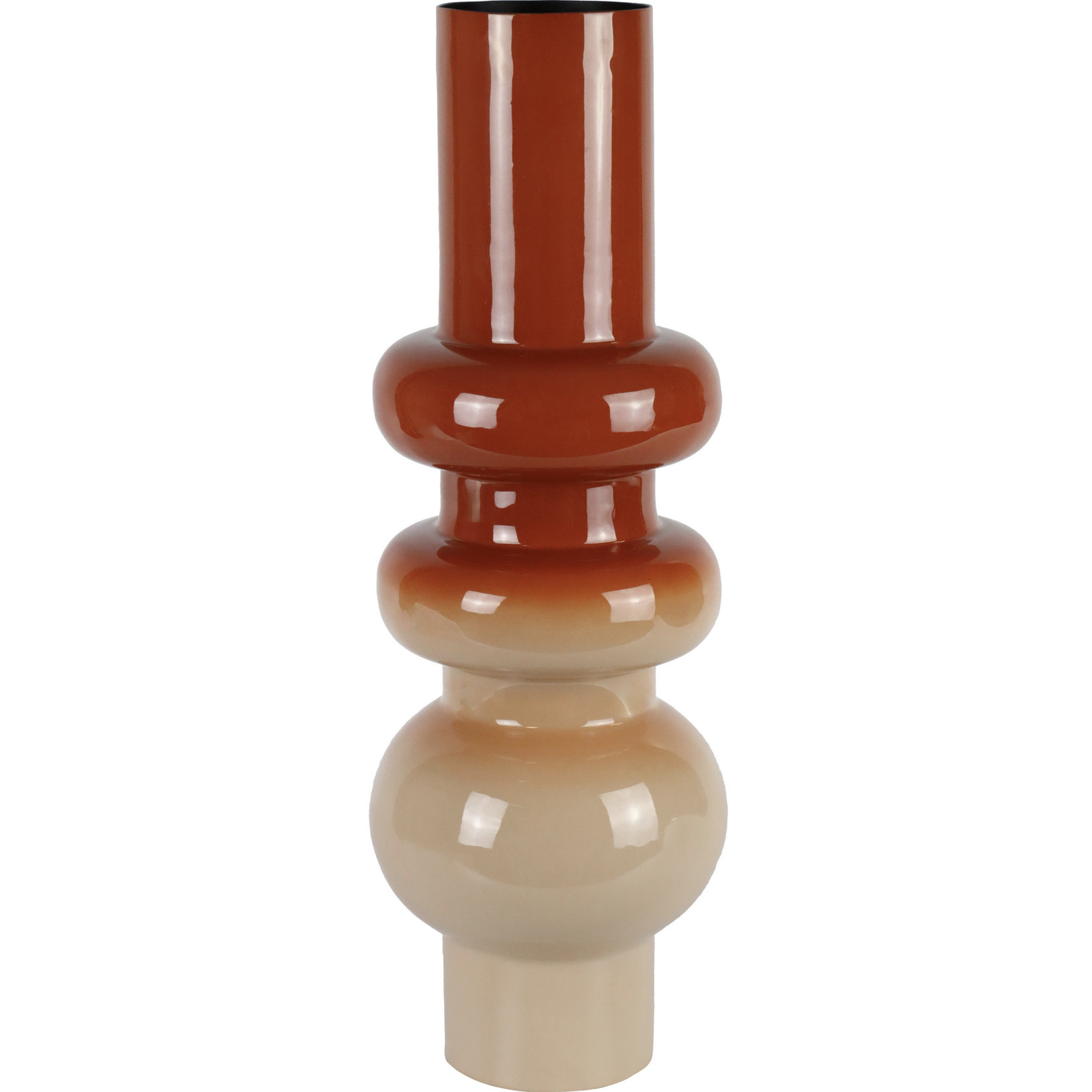 Een elegante vaas met 3 "ringen" die om de vaas lijken te gaan. Door zijn donkerrode en beige kleur is het een geschikte vaas voor ieder interieur. Kleurrijk maar toch een erg warme uitstraling met bijzondere vormen. Decoreer deze vaas op je schouw, eettafel of in een grote kast en ze zal de show stelen, ook zonder inhoud!