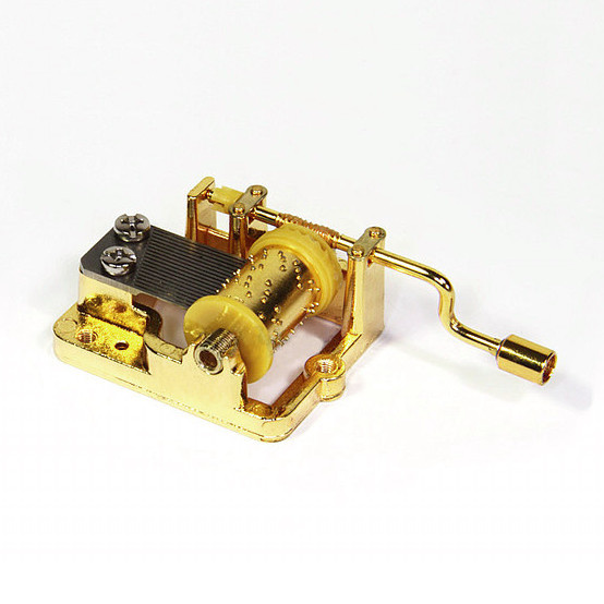 Het goudkleurige mechanisme zit in een kartonnen doosje dat op zijn beurt weer in een helder transparant omhulsel is geschoven. Het kunststof omhulsel is voorzien van een kleine bordeauxrode sticker waarop de titel van de melodie staat aangegeven. Het mechanisme heeft 18 verschillende tonen.
