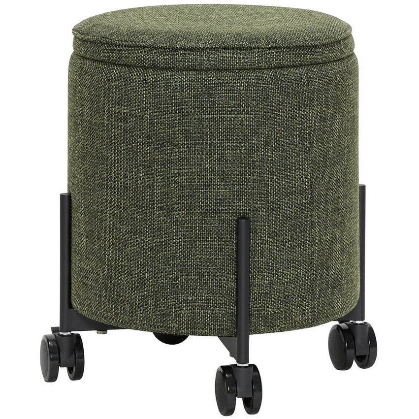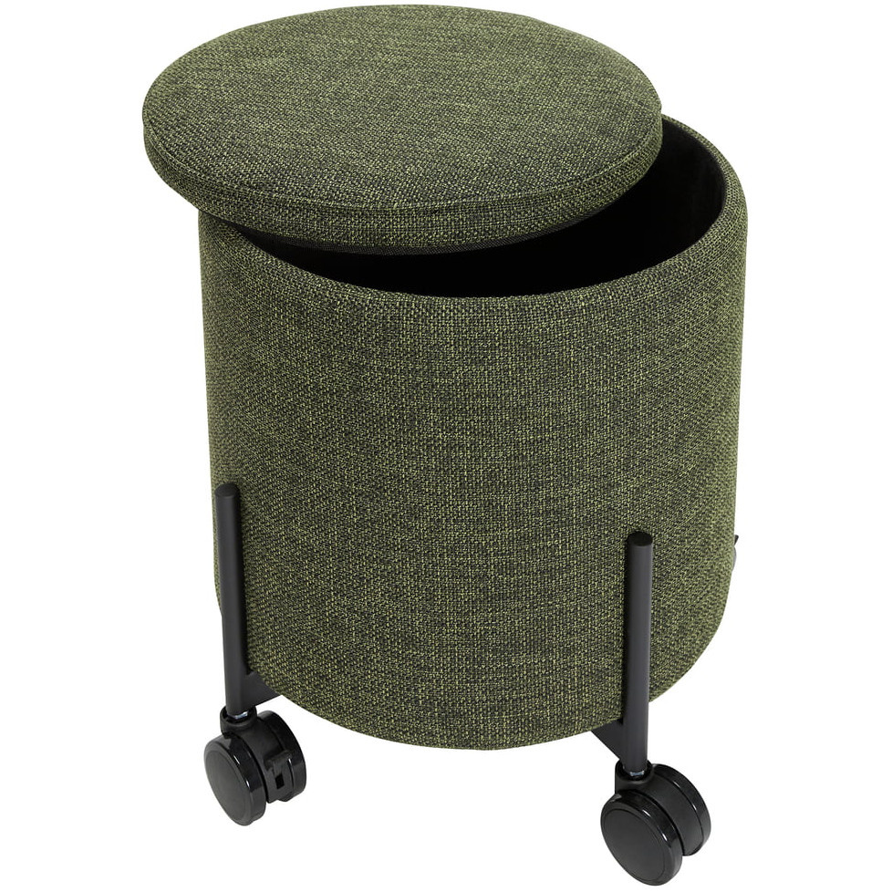 Functioneel en erg decoratief. Rol de poef gemakkelijk naar je toe om je voeten te strekken of gebruik het als alternatieve zitplaats. Deze gestoffeerde poef is met een handige opbergfunctie, door de deksel eraf te halen is het ideaal als opberg voor plaids. Met zijn mooie donkergroene stof en strakke model past deze poef in iedere woonstijl!