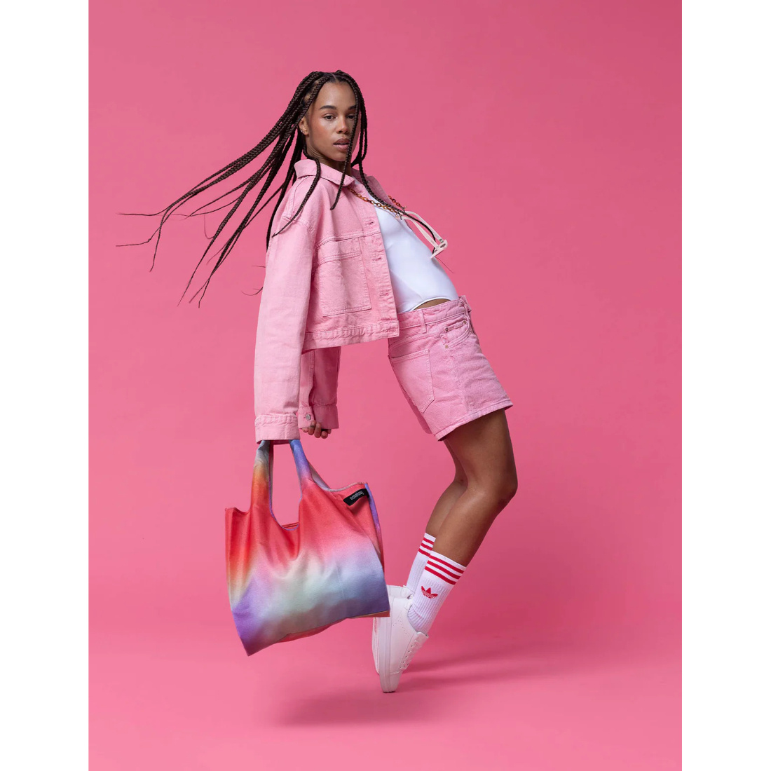 Deze prachtige shopper is voorzien van een bijzonder kleurverloop van groen, paars, oranje en roze. Het trekt de volle aandacht. De tas is opvouwbaar, waterdicht en met de hand gemaakt. Ook is deze tas gemaakt van 100% ripstop en kan tot 20kg dragen. Ga naar je werk, supermarkt of winkel in stijl met deze geweldig leuke tas!