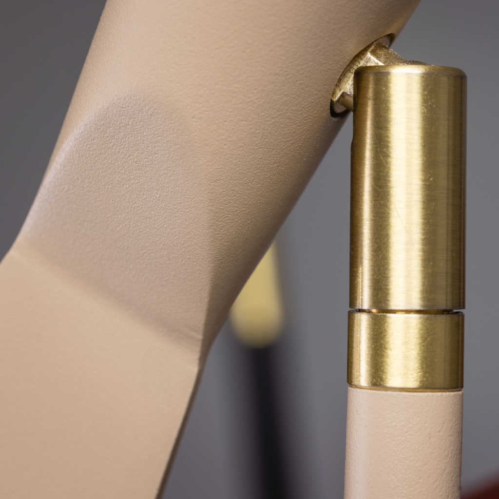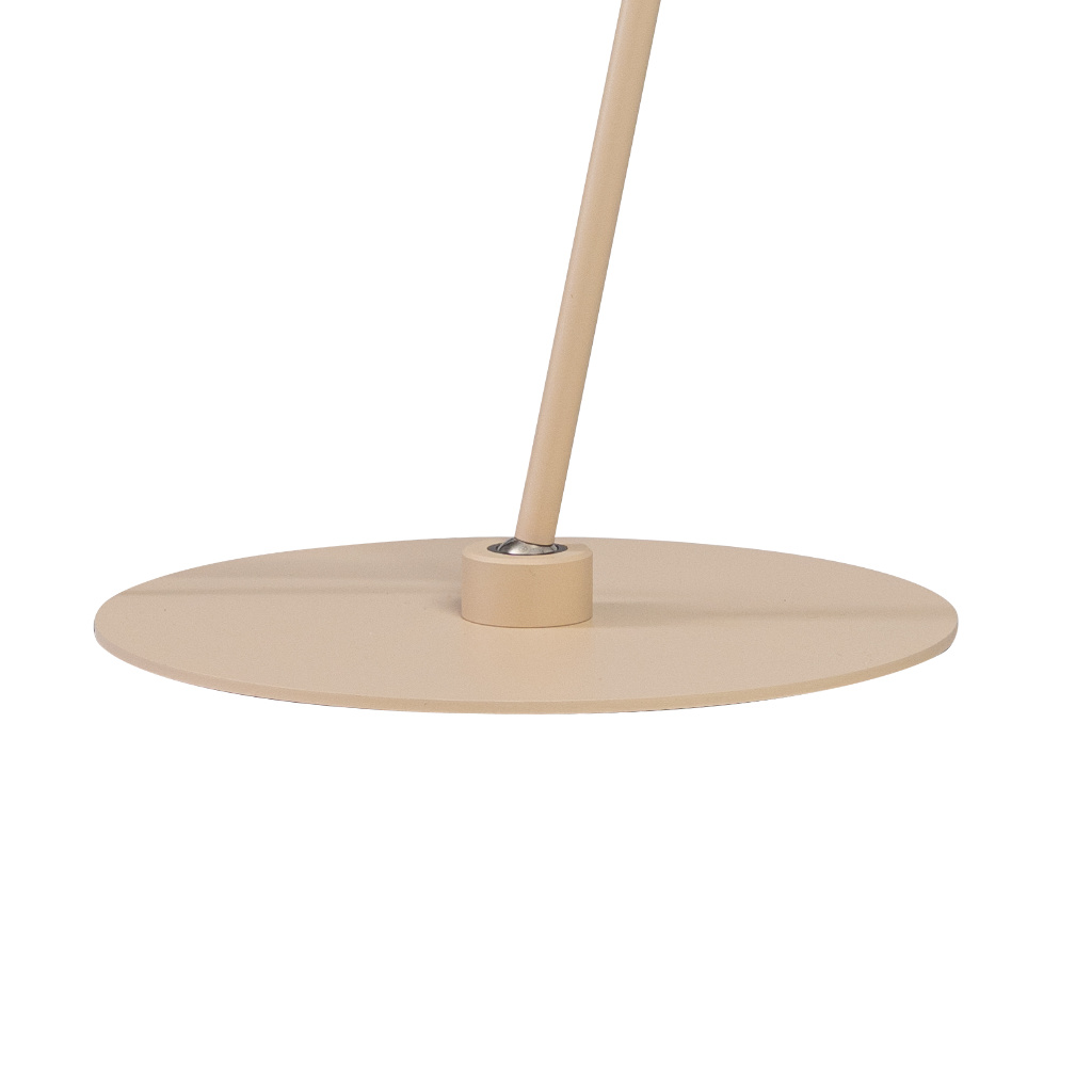 Moderne vloerlamp in massief metalen uitvoering. Ook te gebruiken als leeslamp. Uitgevoerd in mat zand met goud accent, 360 graden verstelbaar aan voet en spot. Deze stoere lamp voegt functionaliteit en design samen. In de lamp is een aan/uit knop verwerkt. Geschikt voor een 3-staps dimbare GU-10 lamp. Voorzien van een 150 cm lange zwarte snoer.