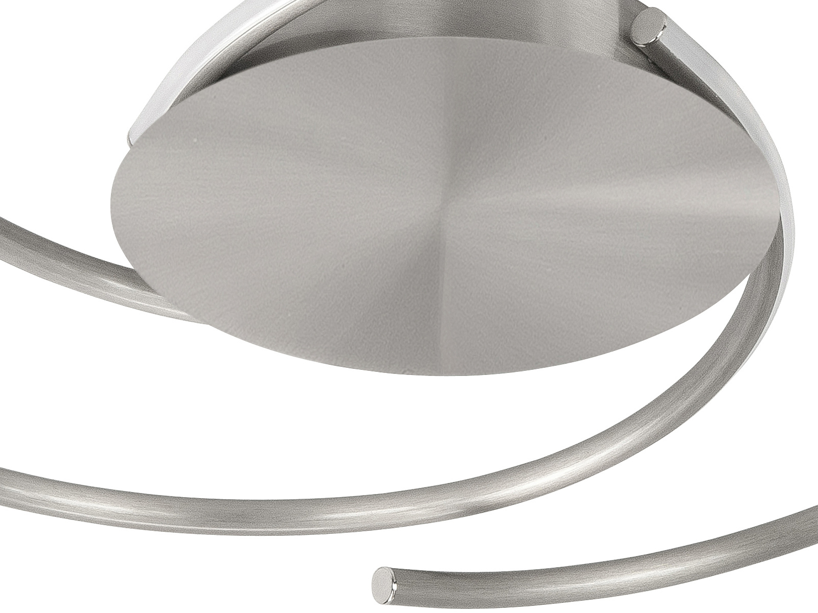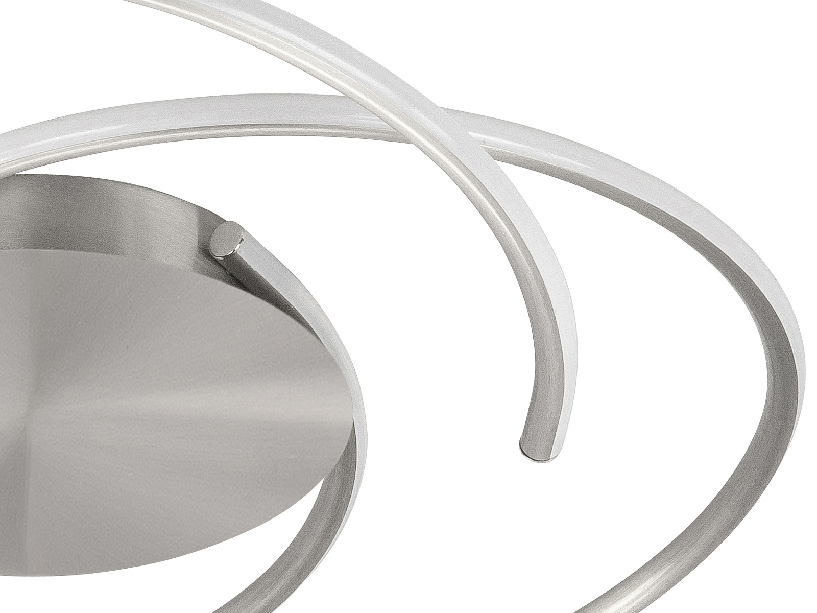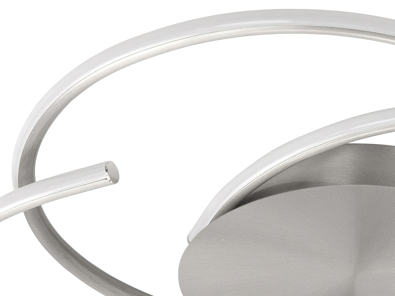 Speelse LED design plafondlamp uit de Reverso serie. Een plafonnière uitgevoerd in geborsteld staal en aluminium waarbij 3 gebogen lijnen zijn gemonteerd op een kleine ronde basis waarin de LED driver is verwerkt. Aan de buitenzijde van de drie bogen zijn siliconen strips gemonteerd waarin de allernieuwste LED techniek is verwerkt. Hierbij is er een speciale coating over de LED strip aangebracht waardoor er een mooi egaal lichtbeeld ontstaat.