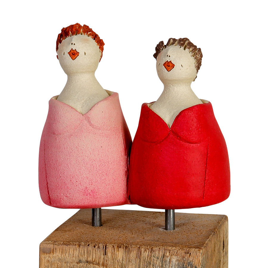Dit beeld uit de serie 'Vriendschap op Eikenhout' met als titel 'Boezemvriendinnen' spreekt voor zich. Of het nu houden van of een hechte vriendschap is, vriendinnen zijn het door dik en dun.