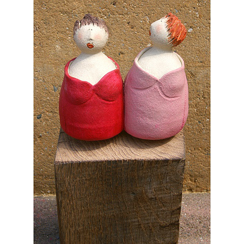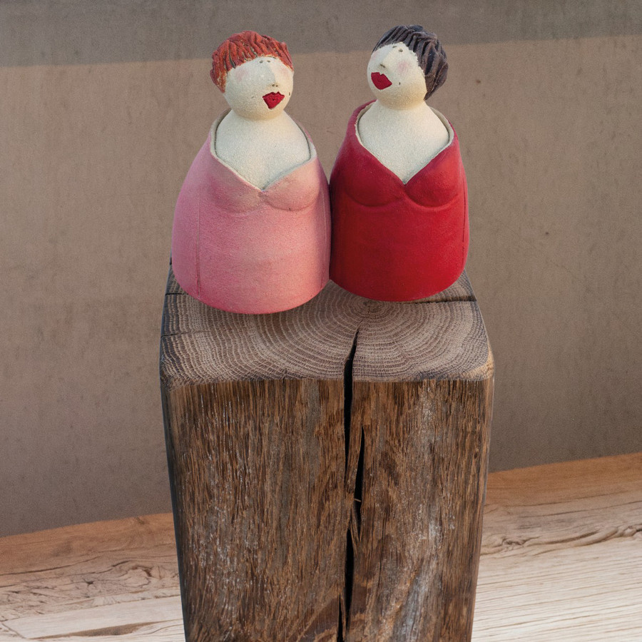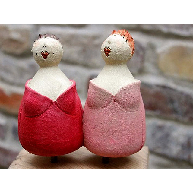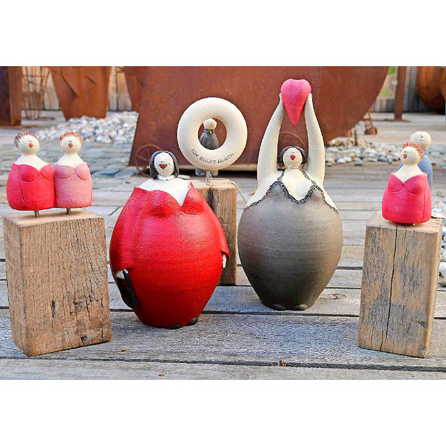 Serie kleurrijke beeldjes van de succesvolle Duitse keramiste Susanne Boerner. Het voornaamste kenmerk, van haar met de hand gemodelleerde beeldjes, is de geestige en soms ook excentrieke uitstraling.