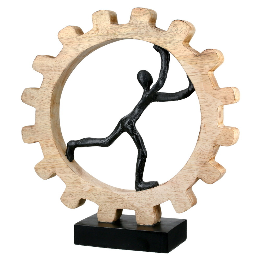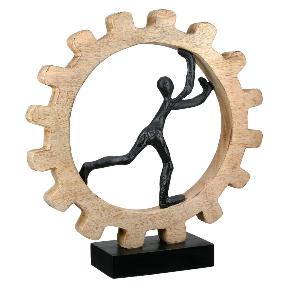 Symbolisch beeld waarbij een figuur in een houten schijf in de vorm van een tandwiel zich voorruit beweegt. Uit de serie "Karaktereigenschappen" van de Duitse firma Casablanca. Het beeld staat symbool voor het feit dat je zelf je eigen keuzes in het leven maakt en hierdoor zelf de richting en het tempo bepaald. Dus zelf het tandwiel van je eigen leven in handen hebben. Onderstreept met het bijgevoegde Duitse tekstkaartje waarop staat: "Je bepaalt zelf het tempo van je leven." Geloof in je eigen kracht geeft de kracht voor grootse dingen!