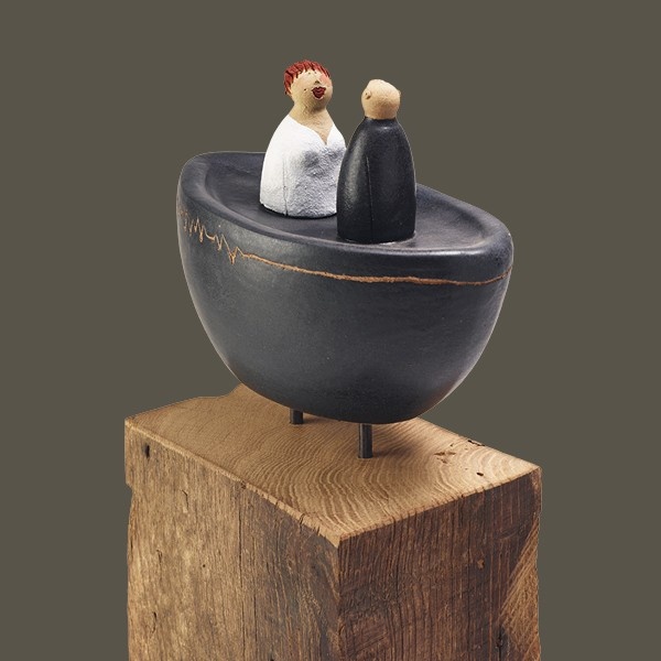 Dit beeld uit de serie 'Vriendschap op Eikenhout' met als titel 'Het liefst met jou' laat niets aan duidelijkheid over. Wie de gelukkige is, dat weet de koper waarschijnlijk zelf het beste...