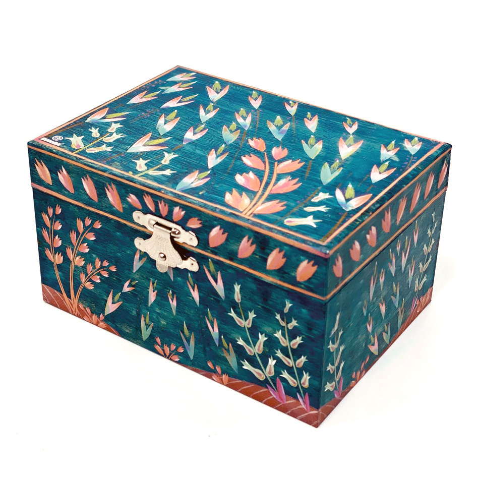 Deze speeldoos van het Griekse merk Svoora is te gebruiken als opbergdoos voor kleine spulletjes. Zoals sieraden, met een apart gedeelte voor ringen. Maar je kunt er ook andere waardevolle zaken in leggen. Bijvoorbeeld je sleutels of pasjes.