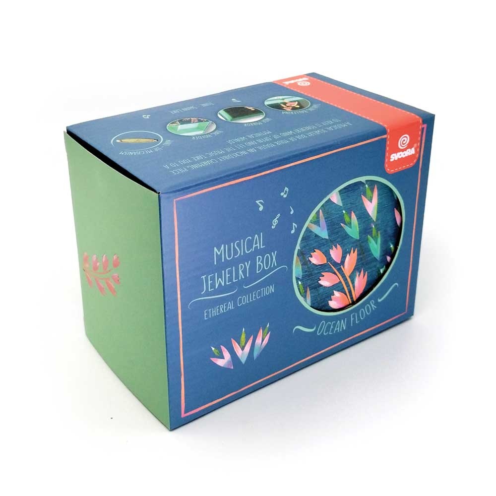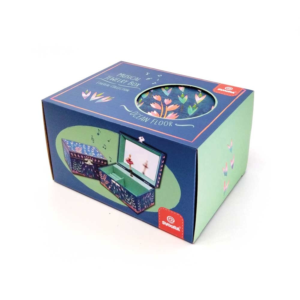 Een muzikale sieradendoos uit je jeugd, een ongelooflijk charmant sieraad om voor altijd te bewaren! Wind hem op, open hem en laat de muziek je meenemen naar een mythische wereld! Met een ronddraaiende ballerina erin biedt de doos nog voldoende ruimte om je kostbaarste bezittingen op te bergen. Geïnspireerd door de diepzee, de omvangrijkste leefomgeving op aarde, is deze doos prachtig gedecoreerd met verschillende waterplanten. Komend vanaf de zeebodem groeien zij sierlijk naar boven, naar het licht. Weergegeven in passende kleuren tegen een achtergrond van water.