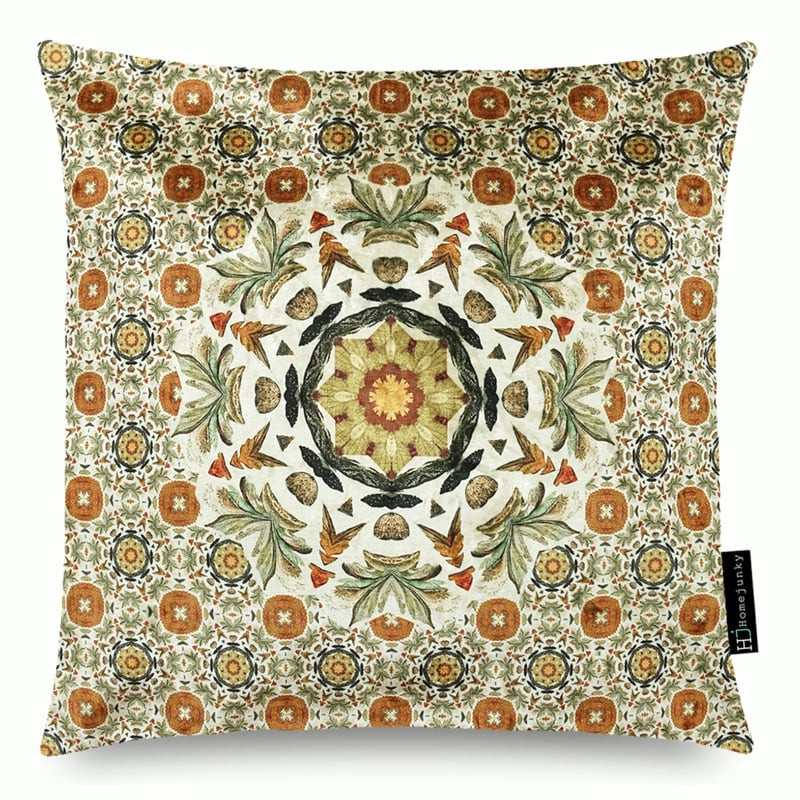 Dit prachtige velours kussen is voorzien van een opvallend patroon met bloemen. De achterzijde van dit kussen is okergeel. Uitgewerkt in diverse warme kleuren met een luxe uitstraling. Het geheel van deze uitvoering trekt de volle aandacht. Je bank of stoel ondergaat een ware metamorfose wanneer je dit kussen erin legt. Een eyecatcher die je huis niet alleen meer kleur, maar ook meer vrolijkheid geeft!