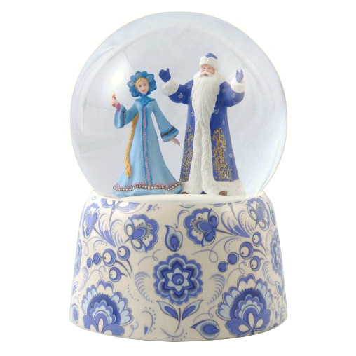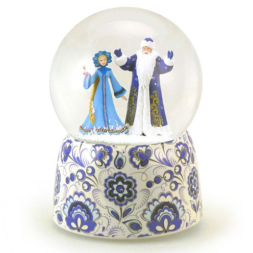 Prachtig in blauw gedecoreerde speeldoos met Grootvadertje Vorst (Russisch: Ded Moroz ('ded' = "grootvader"; 'moroz' = "vorst"), Oekraïens: Did Moroz), ook wel vertaald als Vadertje Vorst of Vadertje Winter (Engels: Jack Frost). Het is een mythisch figuur uit enkele Slavische culturen. Vadertje Winter speelt in die culturen een rol die overeenkomt met die van de Kerstman.