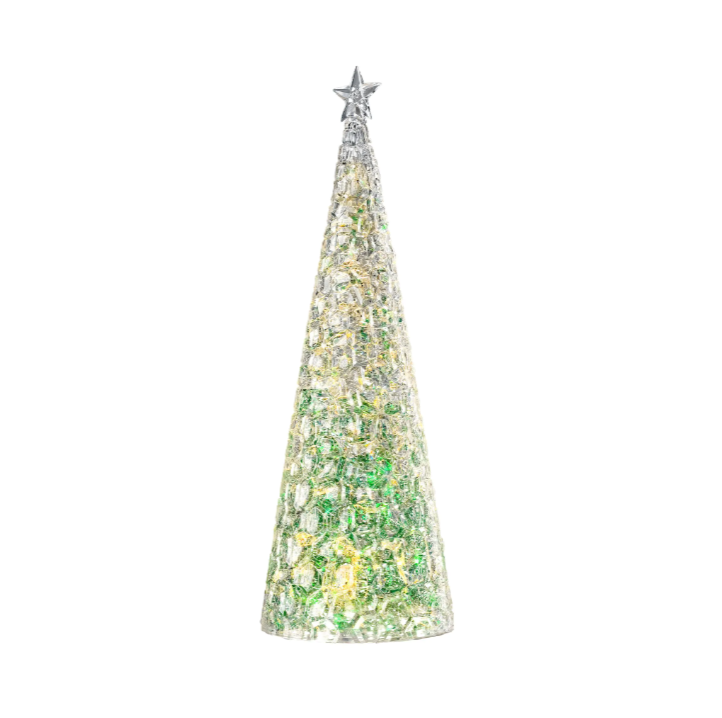 De boom is gevuld met water en groene glitters die bewegen door een geruisloos motortje en daardoor een sprankelend en bewegend effect laten zien. De kerstboom Glamour verspreidt een fascinerende schittering waar deze wordt geplaatst. De lamp heeft een timer die 6 uur aanstaat en 18 uur uit is. De 3x AA-batterijen zijn niet inbegrepen.
