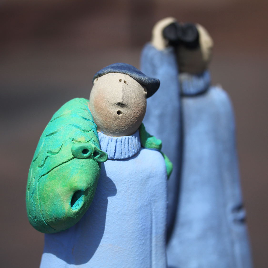 Serie kleurrijke beelden van de succesvolle Duitse keramiste Susanne Boerner. Het voornaamste kenmerk, van haar met de hand gemodelleerde beelden, is de geestige en soms ook excentrieke uitstraling.