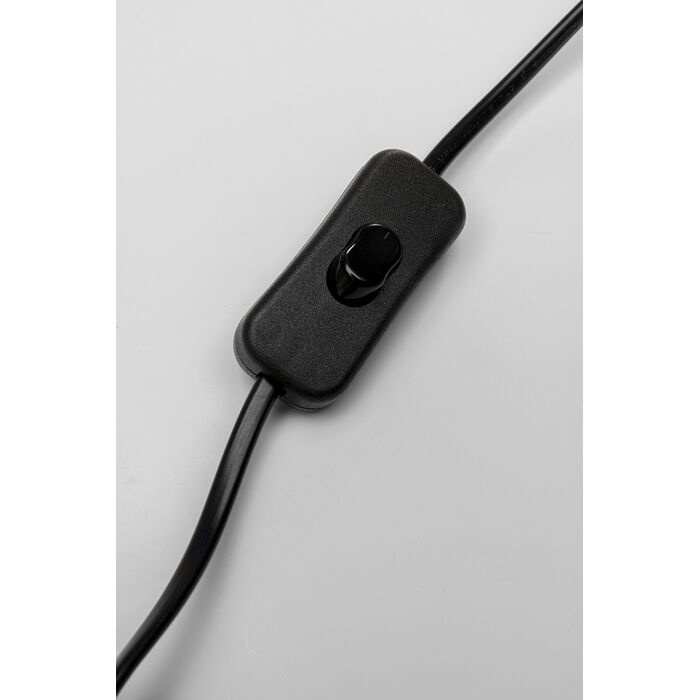 Zwart snoer met aan/uit schakelaar: 145 cm, figuur: polyresin, basis: gepoedercoat staal, kap 100% linnen.